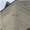 Linear stone cornice is used on the edges between the floors of the building, ingots, window framing, and window top arches, framing the borders of the facade, roof edges, and balconies.