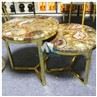 Handcrafted Round Petrified Wood Table with brass-plated iron or golden brass base hardware. This remarkable Round Petrified Wood Table features a large AAA-quality, handmade tabletop overlaid with natural petrified wood gemstone. You can use Petrified Wood Gemstone Table as a guest table, coffee table, or side table. The table top can be also taken off the included metal frame for use as a decorative display piece.